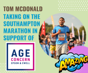 Tom recently discovered Age Concern Epsom & Ewell and was inspired by the vital support our charity provides to older people in the local community. Wanting to get involved, he decided to take on his biggest physical challenge yet – running his first ever full marathon at the Southampton Marathon in May 2026.